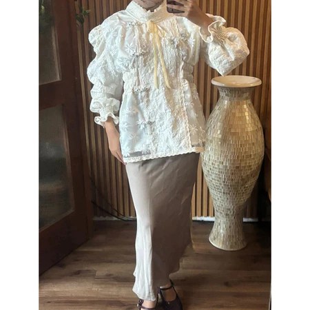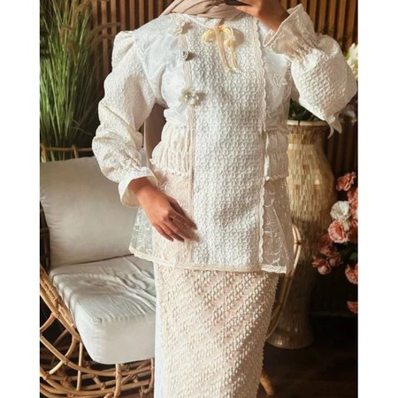 Terbuat dari bahan jacquard ringan yang lembut dan tidak kaku, dipadukan dengan jacquard bermotif elegan yang memberikan sentuhan unik dan feminin.